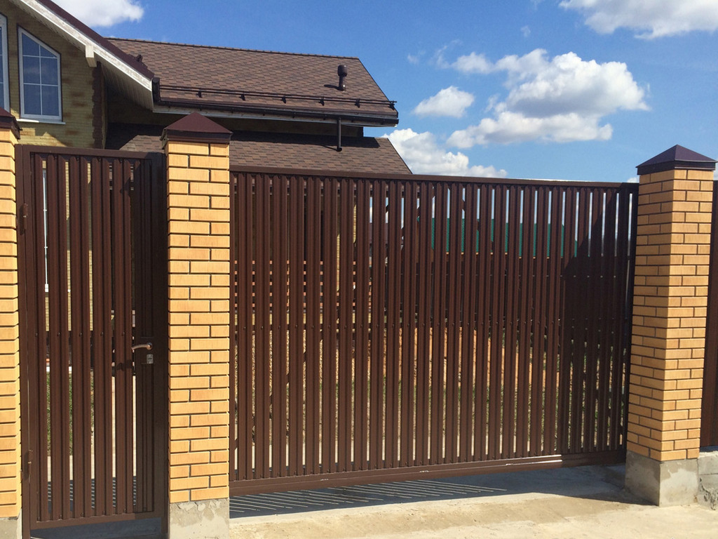 Откатные ворота из евроштакетника пример 3